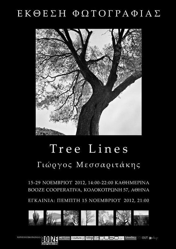 H έκθεση φωτογραφίας Tree Lines του Γιώργου Μεσσαριτάκη, θα πραγματοποιηθεί στις 15-29 Νοεμβρίου 2012, 14:00-22:00, καθημερινά στο Booze Cooperativa, Κολοκοτρώνη 57 στην Αθήνα.