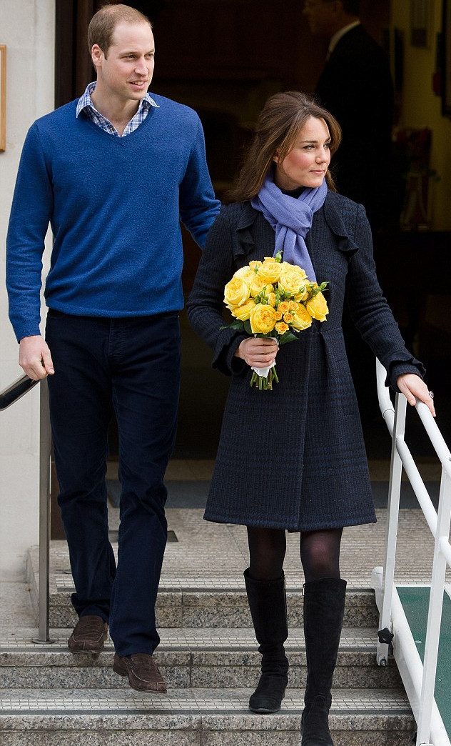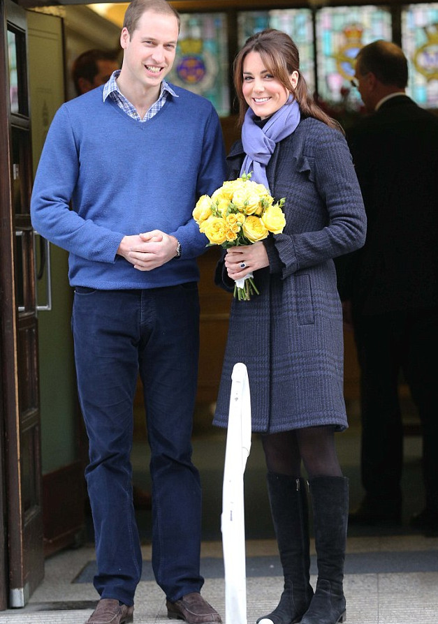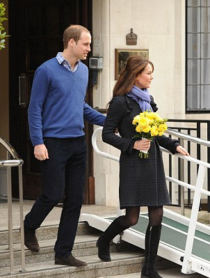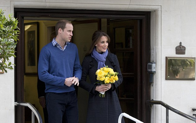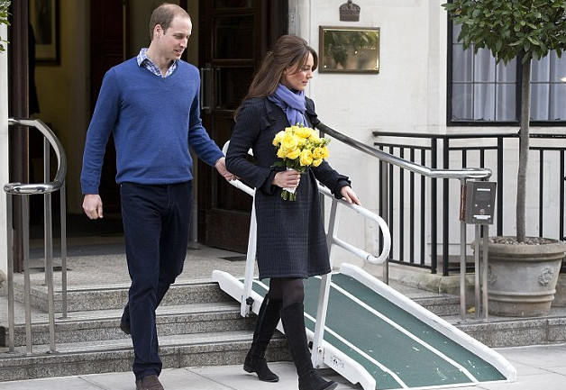 Η Δούκισσα του Cambridge παρέμεινε στο νοσοκομείο τρεις βραδιές και κατά την εισαγωγή της ανακοινώθηκε επίσημα από το παλάτι ότι η Middleton είναι έγκυος. Κατά την έξοδό της από το νοσοκομείο η Kate κρατούσε ένα μπουκέτο με κίτρινα λουλούδια και στη συνέχεια έφυγε με το σύζυγό της, πρίγκιπα William.