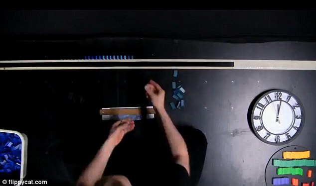 Ο υπομονετικός καλλιτέχνης απέτυχε στο πρώτο του εγχείρημα καθώς είχε τοποθετήσει τα τουβλάκια του σε μεγάλη απόσταση μεταξύ τους και δεν έπεφταν σωστά. Με την δεύτερη προσπάθεια ωστόσο τα κατάφερε κερδίζοντας τον θαυμασμό των χιλιάδων ανθρώπων που τον παρακολούθησαν επί τω έργω στο διαδίκτυο. Ο αριθμός των χτυπημάτων στο βιντεάκι αναμένεται να αυξηθεί σημαντικά καθώς η ανάρτηση έγινε αυτή την εβδομάδα.