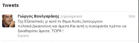 Ο Γιώργος Βουλγαράκης συνεχίζει να στέλνει τα δικά του μηνύματα μέσω twitter για την υπόθεση με το ξέπλυμα μαύρου χρήματος, στην οποία δημοσιεύματα εμπλέκουν και το όνομα του.