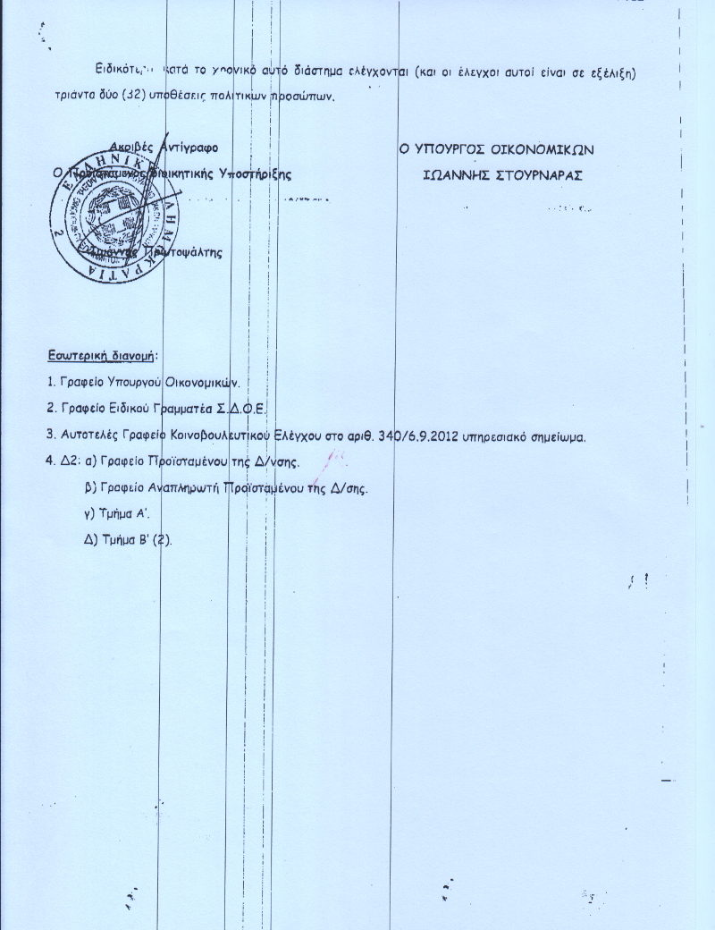 Ειδικότερα κατά το χρονικό αυτό διάστημα (και οι έλεγχοι αυτοί είναι σε εξέλιξη) τριάντα δύο (32) υποθέσεις πολιτικών προσώπων.
