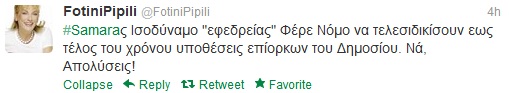 Η πρόταση της Φωτεινής Πιπιλή στον Σαμαρά για την εφεδρεία μέσω... twitter