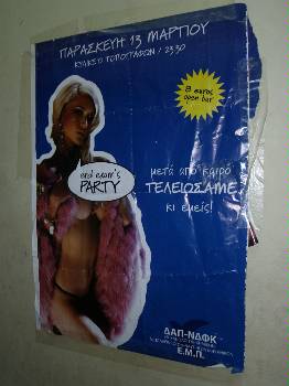 Μια αφίσα της φοιτητικής παράταξης Αριστερή Ενότητα του Εθνικού Μετσόβιου Πολυτεχνείου που διαφημίζει το παραδοσιακό πάρτι της, ενόψει των φοιτητικών εκλογών της 17ης Απριλίου προκάλεσε τη σφοδρή αντίδραση του γραφείου Τύπου της Νέας Δημοκρατίας.