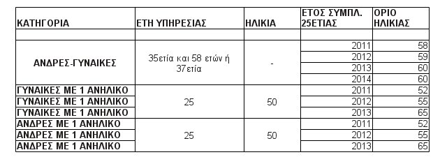 Για παράδειγμα, με τις παραπάνω διατάξεις, ένας άνδρας με 25 χρόνια