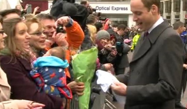 Ενώ ο Γουίλιαμ χαιρετούσε τον κόσμο, μια Βρετανίδα πλησίασε στα κιγκλιδώματα και του έδωσε ένα ζιπουνάκι που είχε ζωγραφισμένο ένα ελικόπτερο και έγραφε «είμαι ο συγκυβερνήτης του μπαμπά μου» (o πρίγκιπας είναι πιλότος μαχητικών ελικοπτέρων). Το δωράκι αυτό έβαλε φωτιά και πάλι στις φήμες που κυκλοφορούν συχνά πυκνά ότι η δούκισσα του Κέμπριτζ είναι έγκυος.