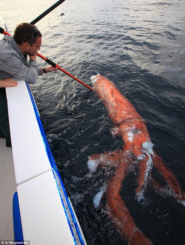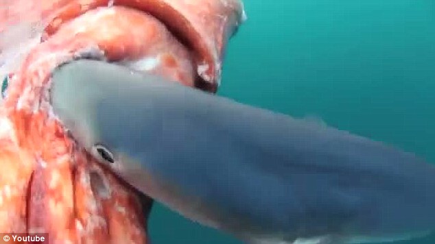 Δεν πίστευε στα μάτια του ο δημοσιογράφος της The Australian Daily Telegraph όταν είδε στην άκρη της πετονιάς του ένα γιγαντιαίο καλαμάρι τεσσάρων μέτρων με εμφανή πλήγματα από επίθεση καρχαρία.