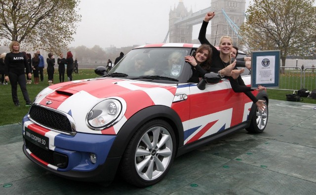 Οι προδιαγραφές που δίνει ο κατασκευαστής είναι για 5 άτομα. Η παρέα όμως των Βρετανίδων απέδειξε πως 28 γυναίκες μπορούν να μπουν στο συγκεκριμένο αυτοκίνητο και να κλείσουν και τις πόρτες. Μετά το κατόρθωμα τους τους χάρισε μία θέση στο βιβλίο με τα ρεκόρ Γκίνες.