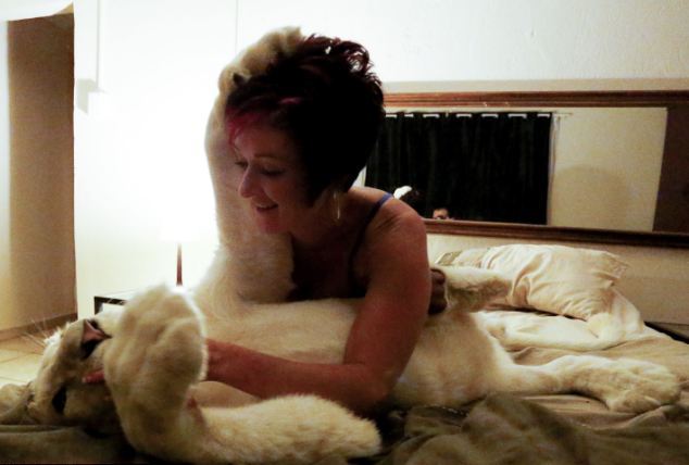 Δεν έχει κάποιο εξωτικό ζώο, αλλά ένα άγριο ζώο της ζούγκλας στο σπίτι της. Η Ανέλ Σνίμαν κοιμάται στο κρεβάτι της μαζί με ένα λιοντάρι!