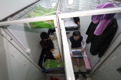 Τα σπίτια αυτά, γνωστά και ως capsule room, είναι μία προσπάθεια αντιμετώπισης του υπερπληθυσμού της Κίνας κι έτσι για να χωρέσουν όσο το δυνατόν περισσότεροι άνθρωποι σε μία πολυκατοικία, η λύση είναι να μικρύνουν (πολύ!) τα διαμερίσματα με αποτέλεσμα το μπάνιο, η κουζίνα και η κρεβατοκάμαρα να στριμώχνονται σε μόλις 4,5 τετραγωνικά μέτρα.