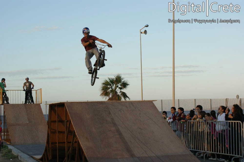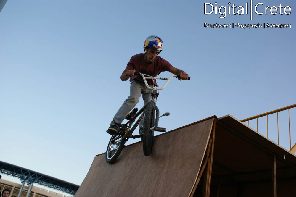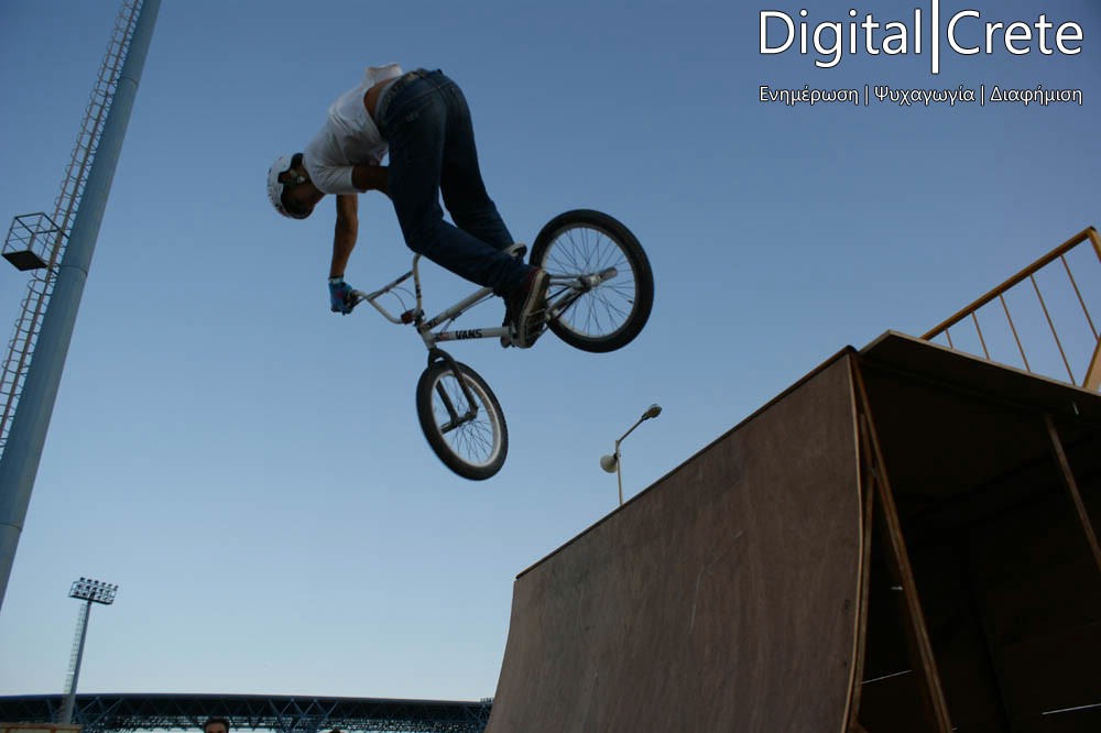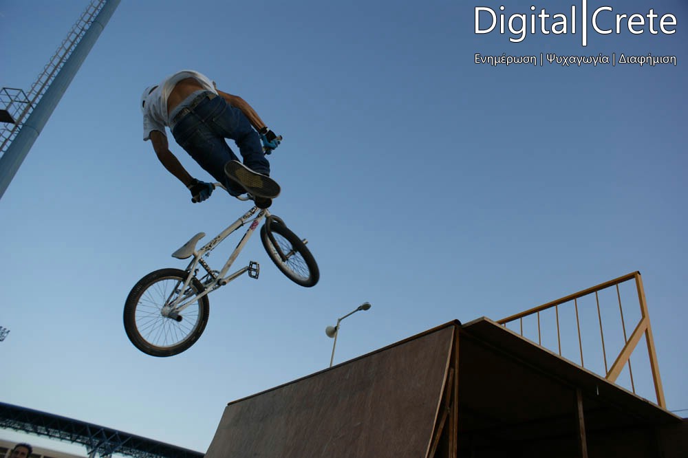 Ο αθλητικός όμιλος Minoan Athletic Camp σε συνεργασία με τον Δήμο Ηρακλείου, παρουσίασε μια extreme έκδοση του BMX σε πλήθος κόσμου στην πίστα πίσω από το Παγκρήτιο Στάδιο.