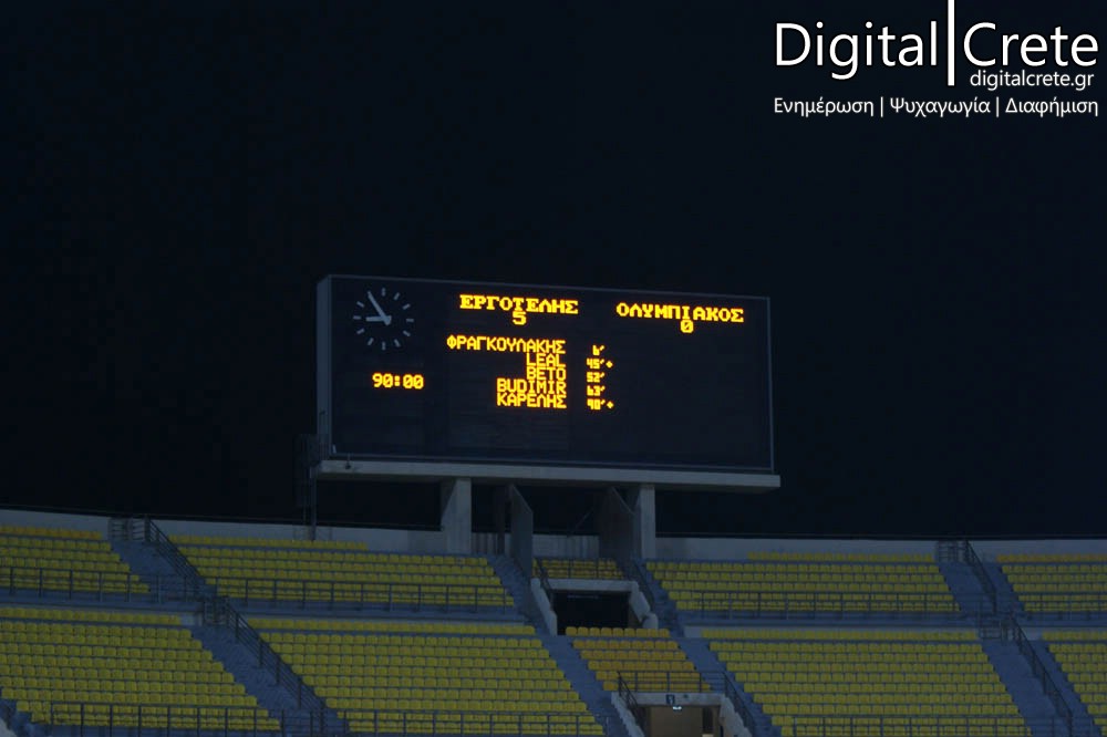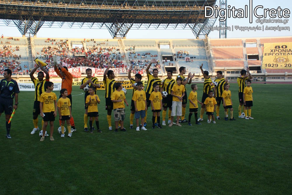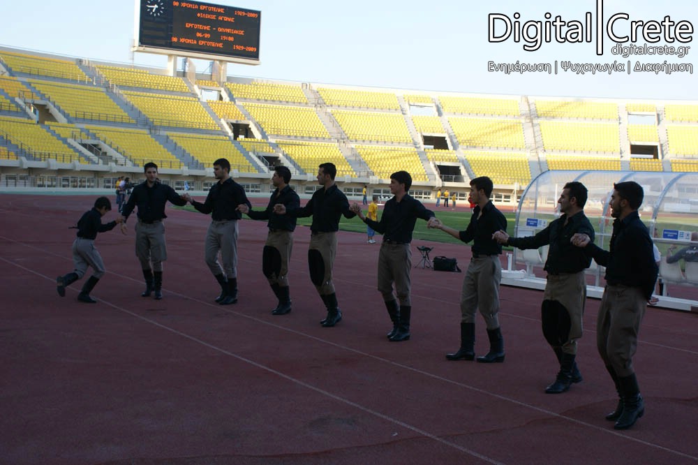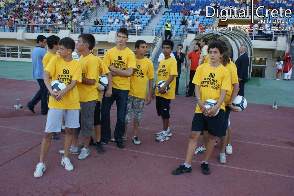 Στην αποκορύφωση των εκδηλώσεων για τα 80 χρόνια του Εργοτέλη, συνέτριψε με 5-0 τον Ολυμπιακό στο Παγκρήτιο στάδιο.