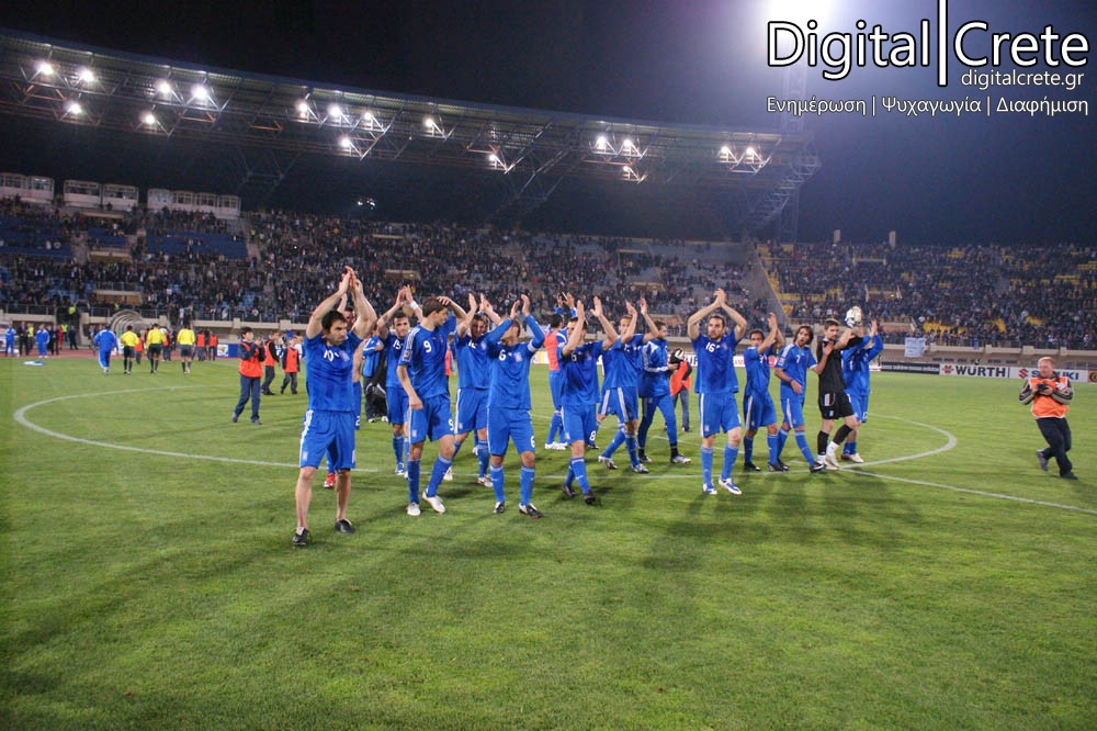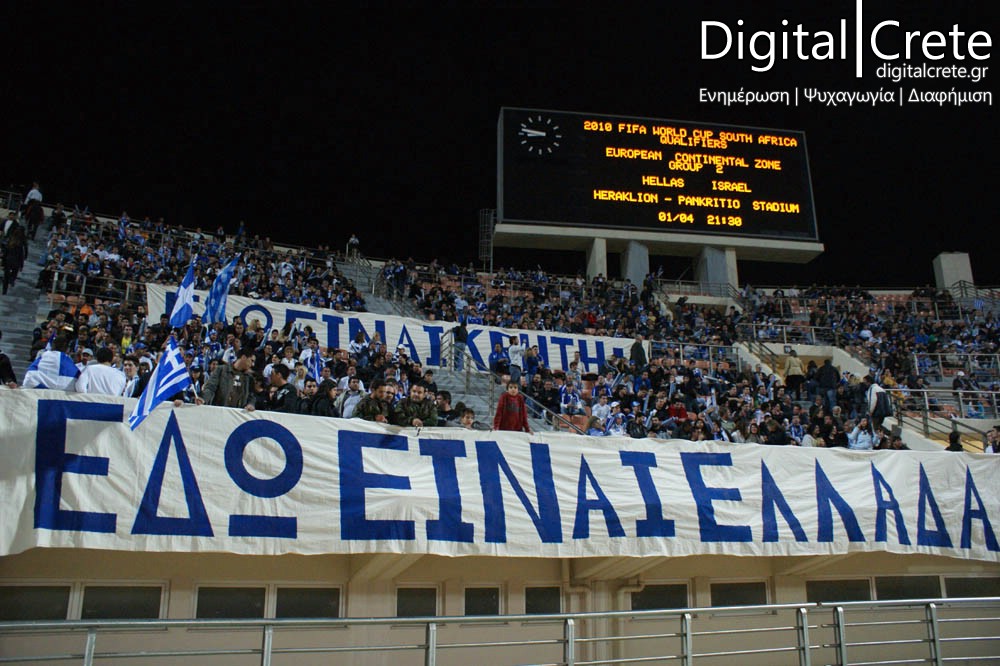 Η Εθνική Ελλάδος νίκησε το Ισραήλ στο ασφυκτικά γεμάτο Παγκρήτιο στάδιο με σκόρ 2-1.
