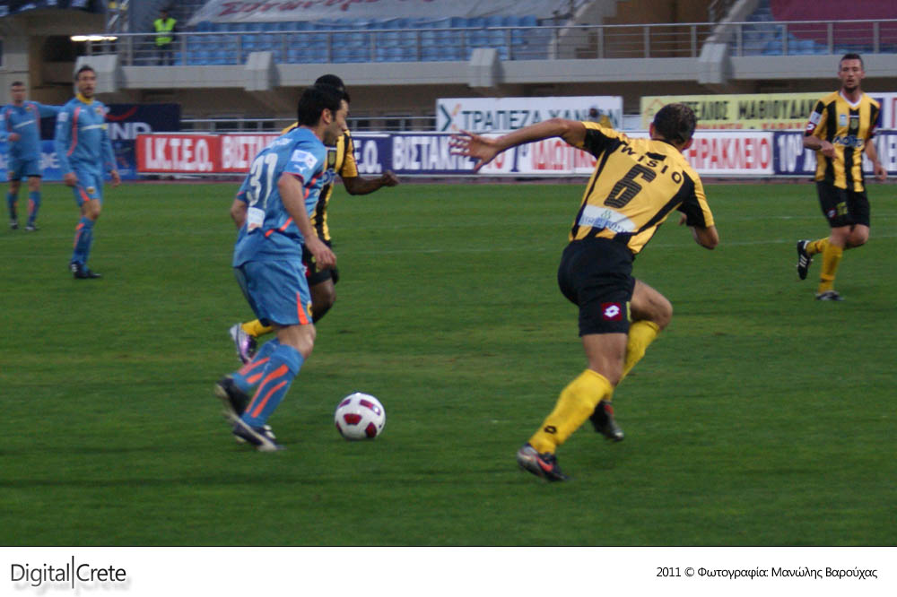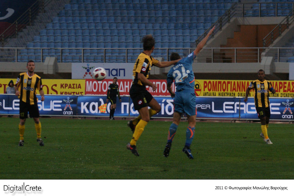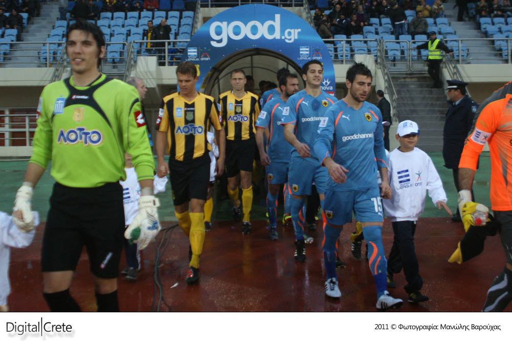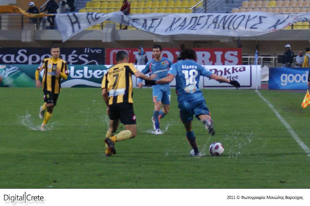 Σε ένα γεμάτο παιχνίδι, με πέναλτι, κόκκινη κάρτα και πέντε γκολ, ο Εργοτέλης ηττήθηκε από την πολύ μέτρια ΑΕΚ στο βροχερό Παγκρήτιο στάδιο με 2-3.