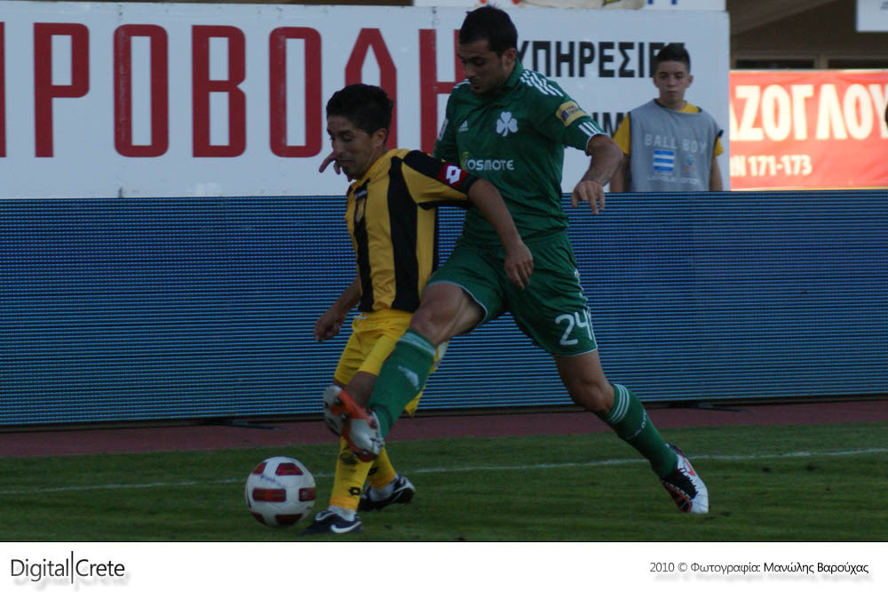 Ο μέτριος Εργοτέλης γνώρισε την βαριά ήττα στο Παγκρήτιο στάδιο με 1-4 από τον πολύ καλό Παναθηναϊκό. Πλήθος οπαδών βοήθησε χωρίς αντίκρισμα στην προσπάθεια του Εργοτέλη.