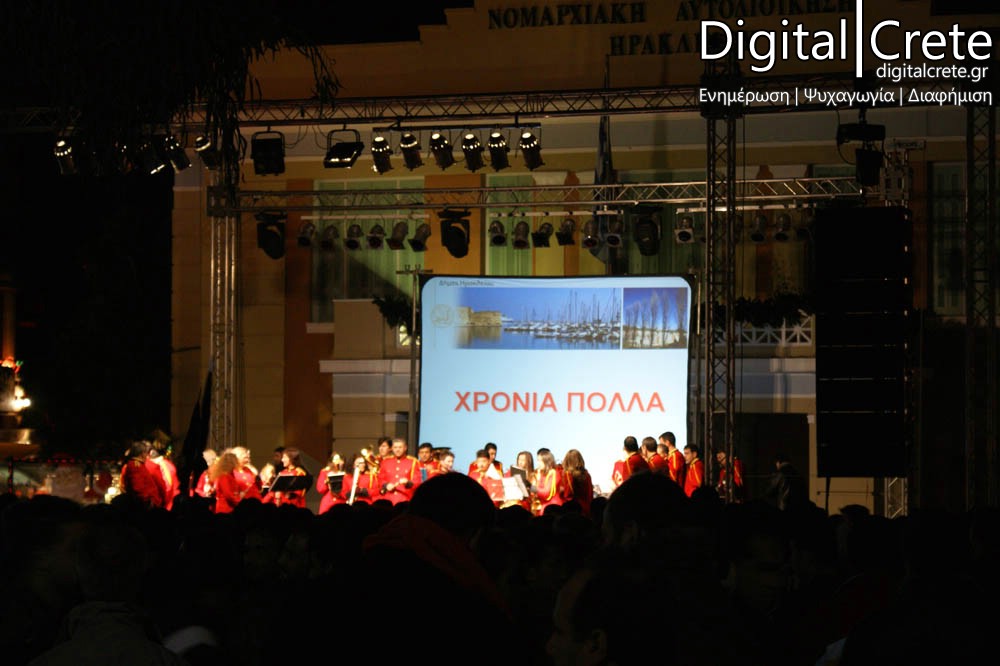 Ο Δήμαρχος Πρωτοχρονιά στην Πλ. ΕλευθερίαςΗρακλείου μας ετοίμασε ένα πλούσιο πρόγραμμα με μουσική και πυροτεχνήματα στο καλωσόρισμα της πρωτοχρονιάς στην Πλ.Ελευθερίας.