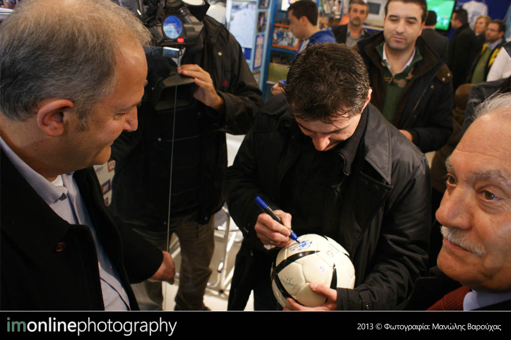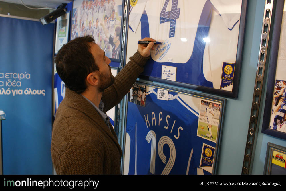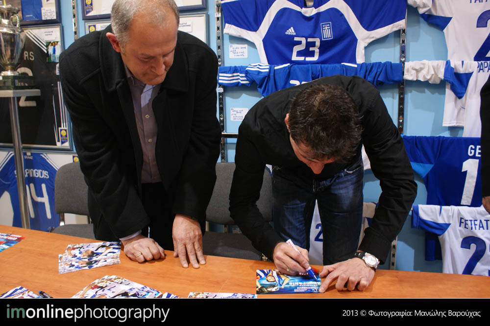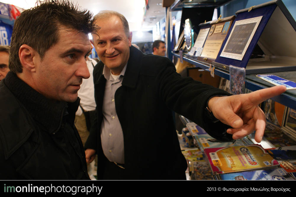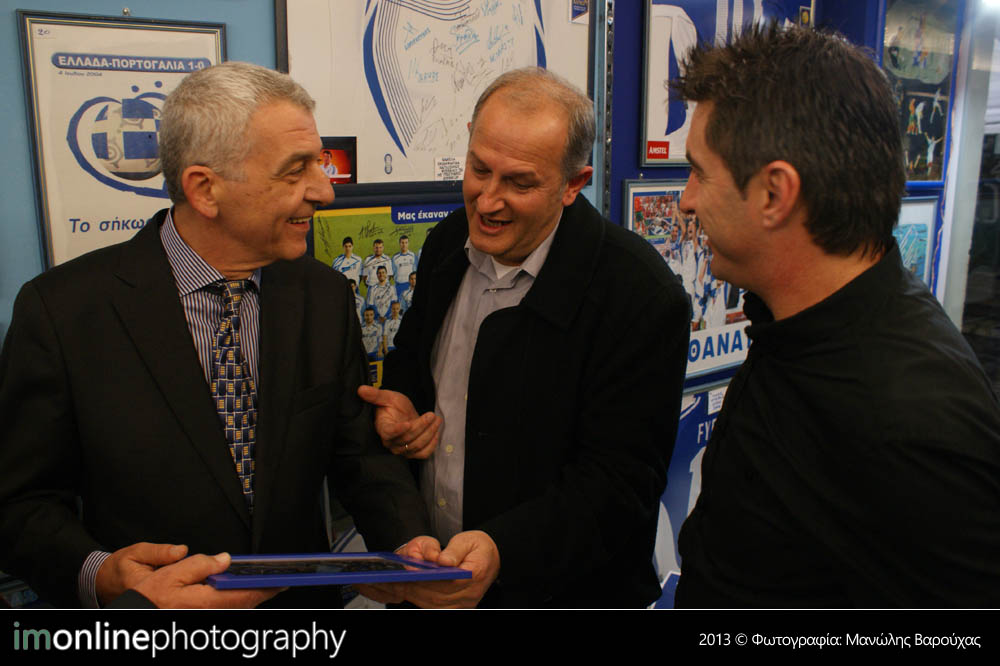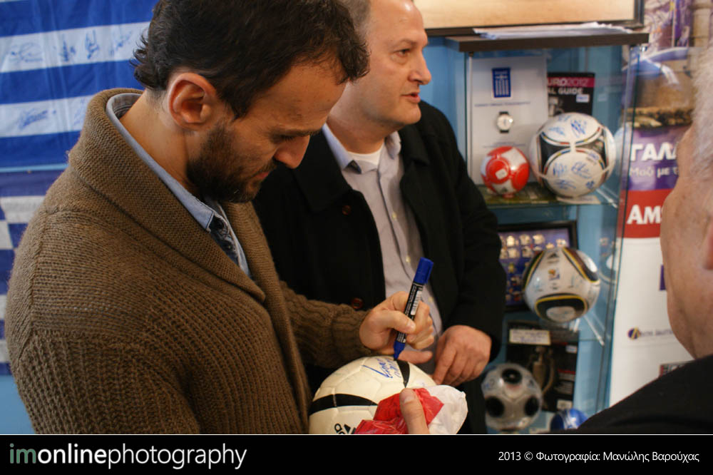 Δύο εμβληματικές μορφές του ελληνικού ποδοσφαίρου, ο Θοδωρής Ζαγοράκης και ο Νίκος Νταμπίζας, επισκέπτονται το μουσείο του Γαλανόλευκου Φάρου.